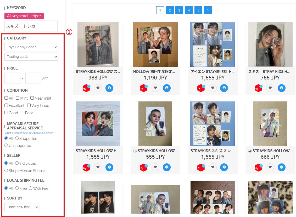 Select your preferred Japanese marketplace, such as Mercari, JDirectItems Auction, Rakuma, JDirectItems Fleamarket, ZOZO, Rakuten, or Surugaya.